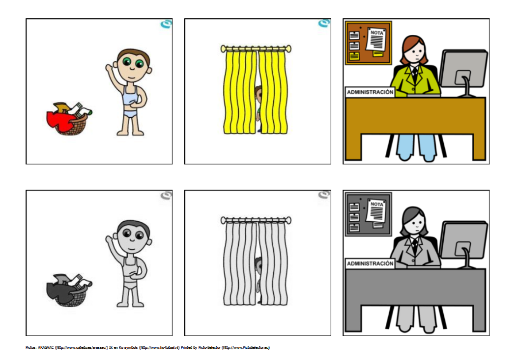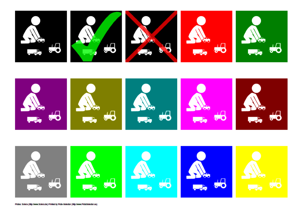 Puede colorear los pictos o poner un signo de error o acierto sobre ellos.