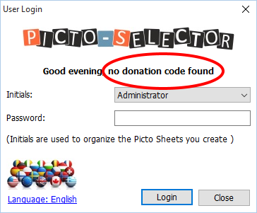 As a contributor you receive a donation code that registers the installed application to your name and disables the donation prompt that is otherwise displayed after installing or updating Picto-Selector. The donation code can be used on multiple computers but is personal and is not to be shared.