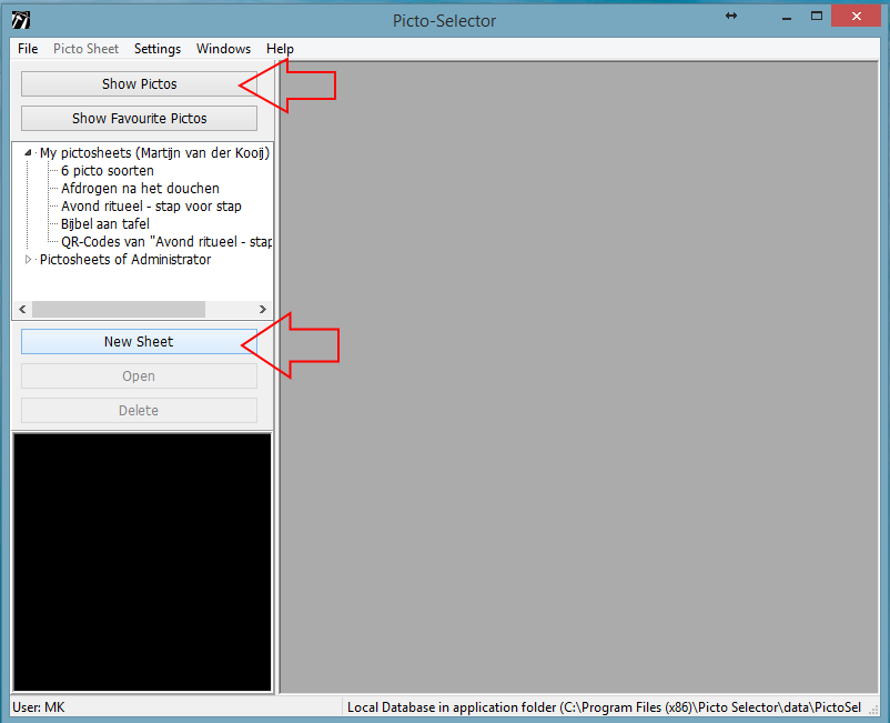 После установки вы можете создать ваш первый пикто-лист с помощью кнопки “Новый лист”.