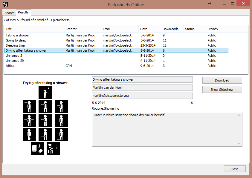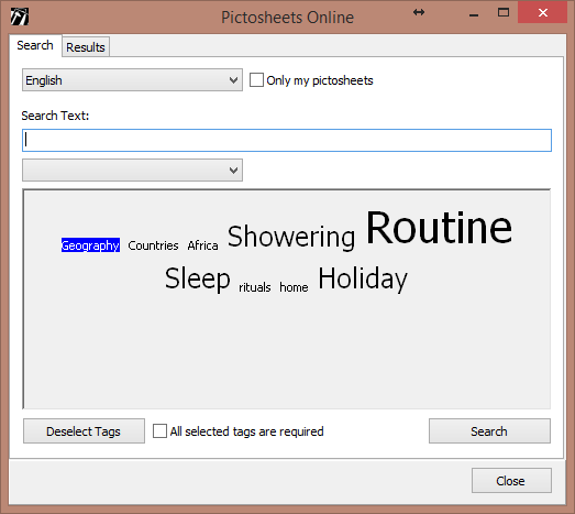 Или можно взглянуть на пикто-листы, созданные другими пользователями, в онлайн-поиске пикто-листов (Pictosheets Online). (Главное меню > Файл > Поиск пикто-листов онлайн (Pictosheets Online Search…))